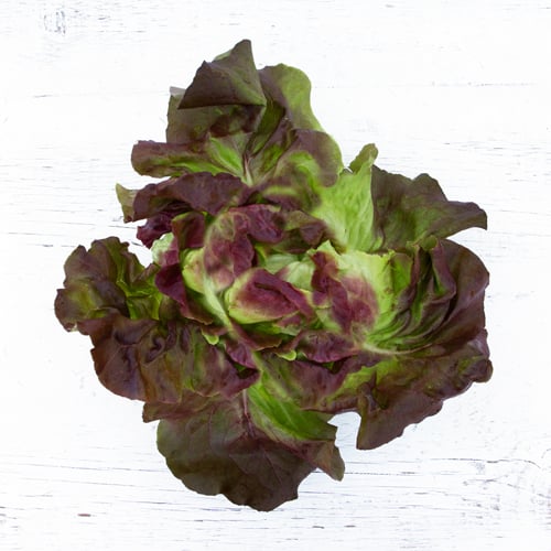 Vibrant red at the tips with splashes of neon green nearer its core, our Red Butter Head Lettuce has soft, buttery leaves. Commonly called Butter, this head lettuce also goes by the names Boston and Bibb.